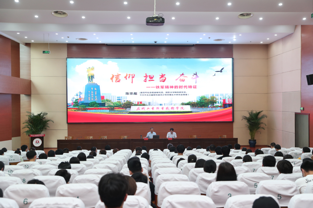 为进一步弘扬铁军精神、传承红色基因,6月22日,盐城新四军纪念馆副研究员、国防大学特约研究员、中共中央文献研究室刘少奇思想生平研究会理事陈宗彪应邀在我校学术报告厅作了题为《信仰 担当 奋斗一一铁军精神的时代特征》的报告。学校马克思主义学院教师、班主任、辅导员及部分学生聆听了此次报告。党委委员、宣传部部长陈宏武主持报告会。