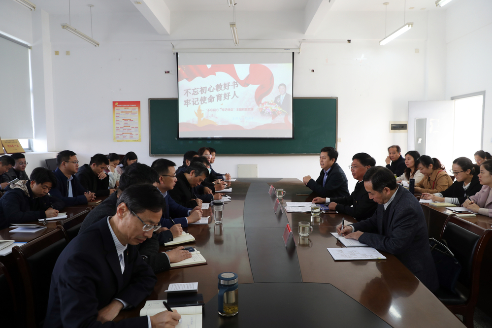 按照学校党委“不忘初心、牢记使命”主题教育的统一安排,10月28日,副校长刘必千到经贸管理学院讲授《不忘初心教好书、牢记使命育好人》主题教育专题党课。省委第13巡回指导组领导、组织部领导和团委、学工处、继续教育学院、素质教育中心、经贸管理学院教职工党员聆听了党课。