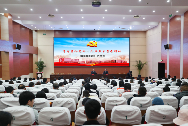 根据盐城市委统一部署,12月2日上午,市委宣讲团成员、盐城工学院党委书记刘祖汉教授来我校宣讲党的十九届五中全会精神。校领导邵从清、张林龙、刘必千、蔺俊、夏燕萍,全体中层干部,党务部门工作人员,全体辅导员、思政课教师,各二级学院教师代表、学生代表等200余人参加了报告会。校党委书记邵从清主持报告会。