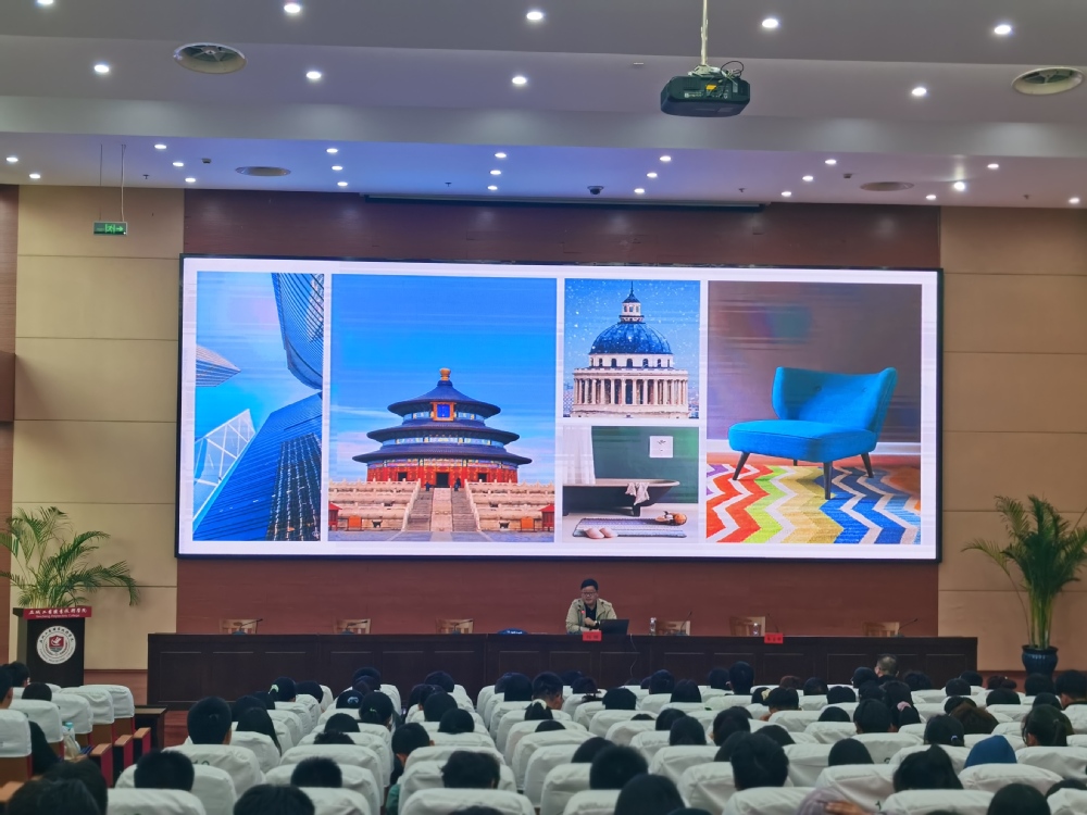 杨骥详细介绍了建筑装饰行业现状及发展趋势、室内设计师职业及其技能要求等内容。通过典型案例解读,增强了学生对建筑行业区域文化的理解,提高了学生的创新设计意识,为新生生动解答了专业学习时容易遇到的各种问题。