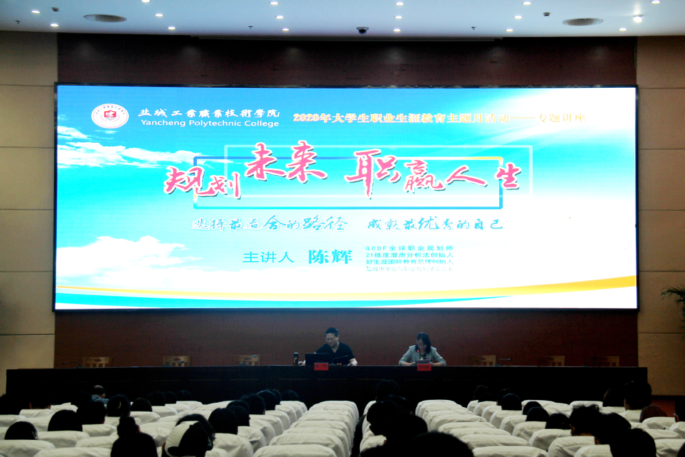 5月29日,GCDF全球职业规划师、21维度潜质分析法创始人、好生涯国际教育品牌的创始人、盐城市学业与职业规划学会会长陈辉老师应邀来我校作题为“选择最适合的路径,成就最优秀的自己”大学生职业生涯规划专题讲座。校团委副书记包婷婷,学工处负责老师,各团总支书记、负责就业创业工作的辅导员老师、职业生涯规划大赛指导老师、以及全校各级团学组织主要学生干部等近150人聆听讲座。