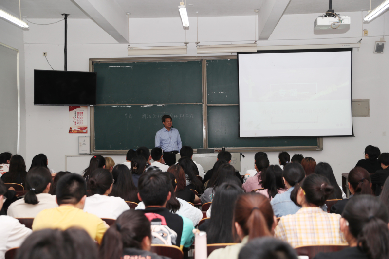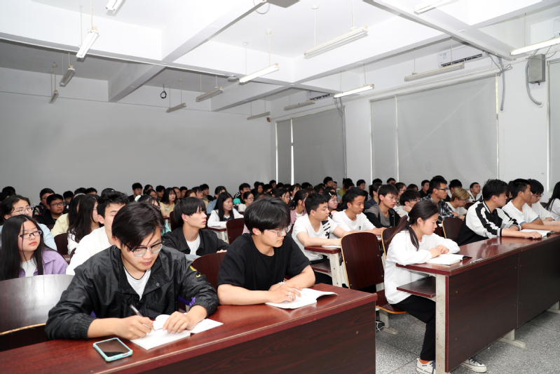 瞿才新结合学生专业,从纺织行业的进步发展讲授开始,拉近与学生之间的距离,接着从“雄关漫道真如铁——救亡图存的时代主题与科学社会主义的选择”、“人间正道是沧桑——科学社会主义实践的内在逻辑及其启示”、“长风破浪会有时——新时代中国特色社会主义是21世纪科学社会主义的旗帜”三个部分进行讲授,在生动有趣的历史中,在深刻的理论总结中,给学生们讲清了中国共产党为什么能、马克思主义为什么行、中国特色社会主义为什么好,推动学生进一步坚定中国特色社会主义的道路自信、理论自信、制度自信和文化自信。