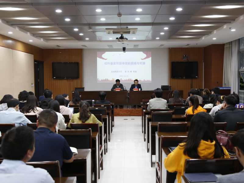 10月15日下午,我校在图文信息中心第三会议室举行学术沙龙活动,邀请了盐城师范学院易高峰教授作题为《社科基金项目申报的困境与对策》的讲座。我校人文社科专业科研骨干和新进教师代表50余人参加。技术转移中心主任樊理山主持活动。