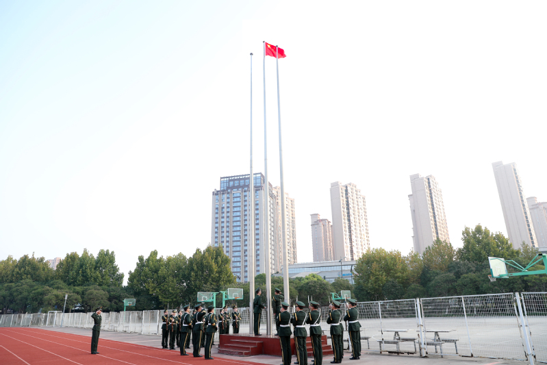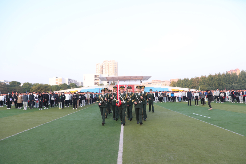 典礼在庄严的国歌声中拉开序幕,鲜艳的五星红旗冉冉升起。全体新生满怀信心,以饱满的精神状态迎接大学生活。