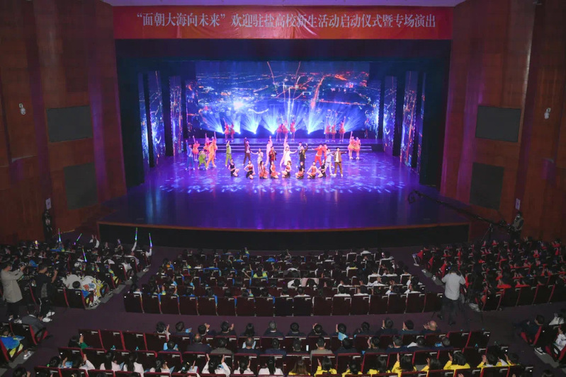 10月23日,“面朝大海向未来”欢迎驻盐高校新生活动启动仪式暨“壮阔黄海潮·奋进新时代”欢迎驻盐高校新生专场文艺演出在市文化艺术中心大剧院举行。我校选送的时装走秀节目《锦绣》登上本次演出舞台,校长瞿才新,团委副书记包婷婷,120名大一新生代表现场观看了演出。在校新生在学校大学生活动中心观看了现场直播。