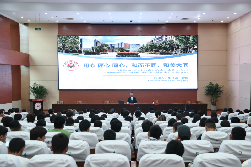 10月8日下午,校党委书记邵从清以《用心 匠心 同心 和而不同 和美大同》为题,在学术报告厅为2023级留学生讲授了“开学第一课”。