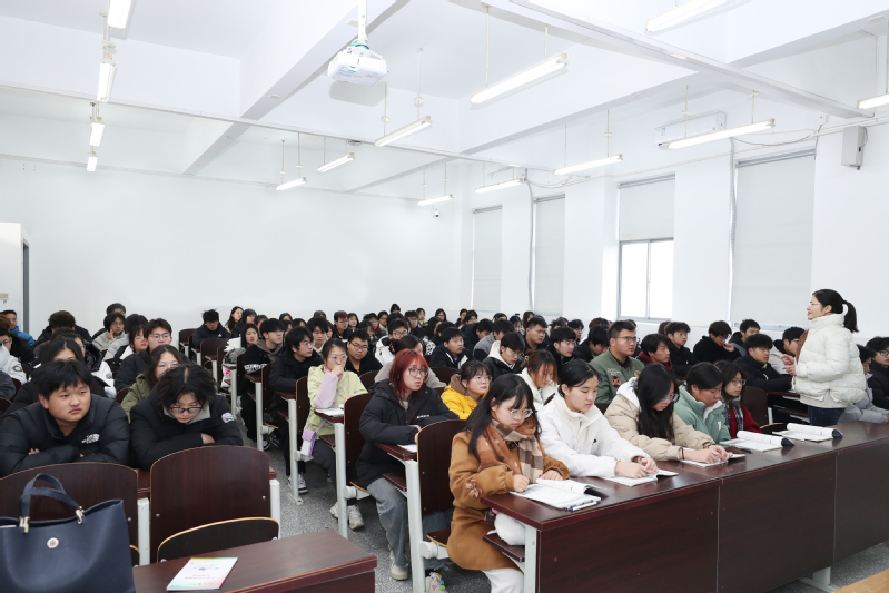 课堂上,顾玉萍以问题为导向进行启发式、互动式授课,围绕标题中“教育、科技、人才”等关键词展开,向学生阐释加快建设教育强国、科技强国、人才强国是着眼长远发展的重大抉择。顾玉萍指出,教育是民族振兴、社会进步的重要基石,是功在当代、利在千秋的德政工程。科技是国家强盛之基、安全之要,必须加快科技自立自强。人才是实现民族振兴、赢得竞争主动的战略资源,必须坚持人才引领驱动。实现中华民族伟大复兴,科技是关键,人才是基础,教育是根本,必须认识到教育、科技、人才具有内在一致性和相互支撑性,要把三者作为一个完整体系统筹推进,形成推动高质量发展的倍增效应。