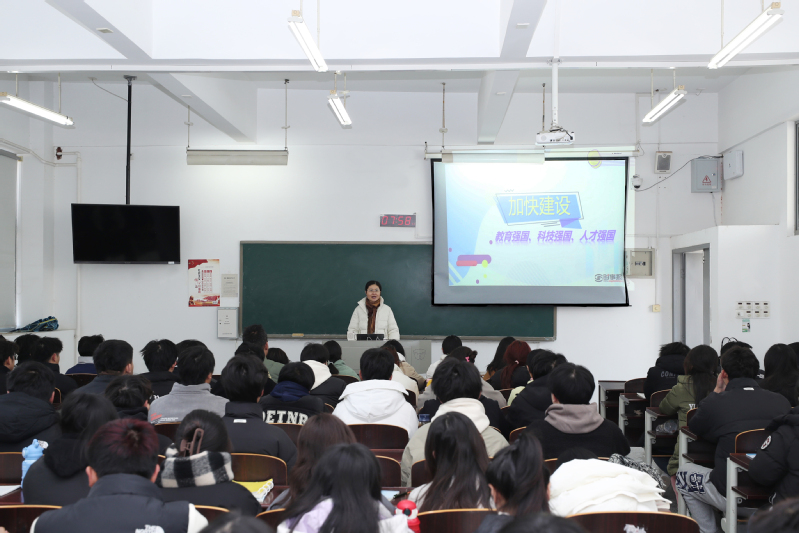 12月1日,纪委书记顾玉萍以《加快建设教育强国、科技强国、人才强国》为题,为建筑工程学院造价2311、2312、2313班的同学讲授“形势与政策”课。
