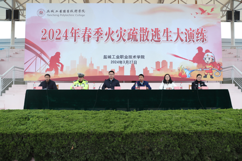 3月27日,学校在风雨操场举行2024年春季火灾疏散逃生大演练暨校园安全教育大会。本次活动由保卫处牵头,联合盐南高新区消防救援大队、盐城市公安局交警支队六大队科城中队和盐南高新区公安分局科城派出所和学校宣传部、学工处、后勤管理处、信息中心、各二级学院共同开展。副校长王曙东出席活动并讲话。