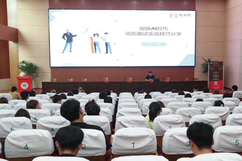 随后中国教育在线资深讲师郭亮、李清分别作题为《神笔简历》《AI面试官》的讲座,校学工处章静老师作题为《职业心理测评》的讲座。