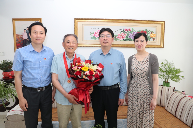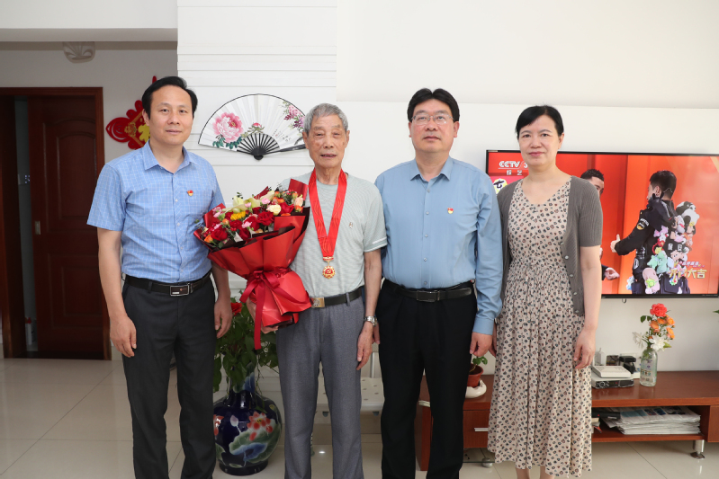 6月24日,党委副书记蔺俊,党委组织部部长郭泽忠,离退休教职工党总支书记祁艳清等同志上门为退休老党员窦彦、沈云海颁发“光荣在党50年”纪念章,并致以节日的问候和祝福。