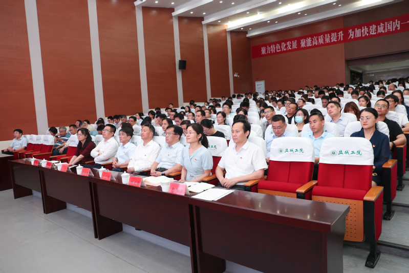 在盐校领导,全体中层干部、教职工党员和部分学生党员参加报告会。