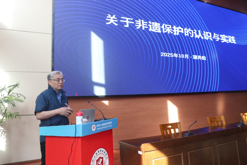 11月3日上午,文化和旅游部原副部长项兆伦在学术报告厅作《关于非遗保护的认识与实践》专题讲座。讲座由副校长王曙东主持。