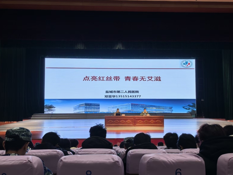 11月18日,学校特邀盐城市第二人民医院妇产科邓亚华副主任医师,为2025级新生带来“点亮红丝带 青春无艾滋”健康知识专题讲座。